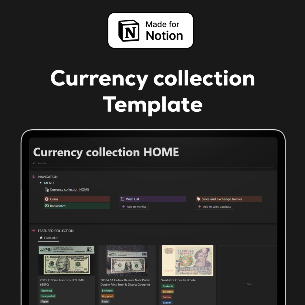 Get started today and take control of your currency collection journey. With our Notion template, your collection will be organized, beautiful, and fully adaptable to your needs.